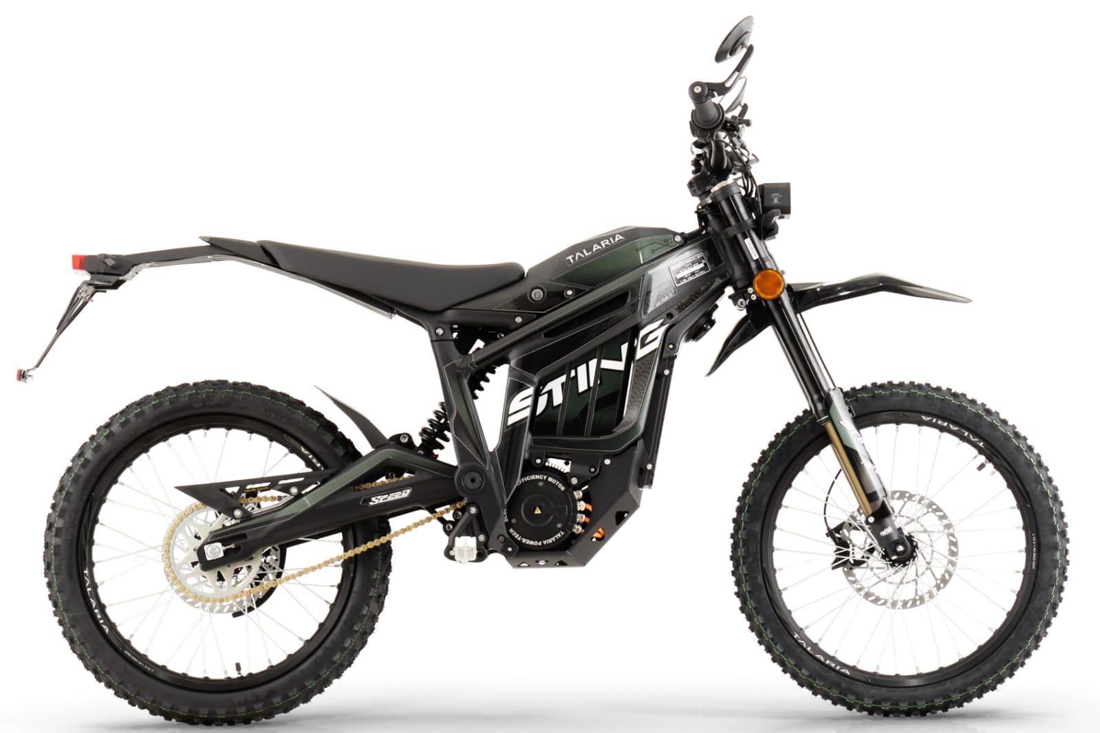 The Talaria Sting R L1E also known as Talaria Sting R TL50 or Talaria Sting R road legal, adds the ability to legally ride on the road, as the bike is homologated to the R L1E category, equivalent to a 50cc moped. The addition of a larger OLED multi function screen, road legal headlight, reactive brake light, mirrors and the indicators too. Finally, the Talaria STING R L1E boasts a Tail Tidy style number plate holder as standard, which was often the part that was modified on other brands.